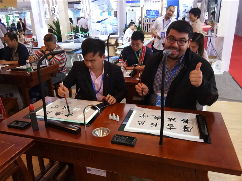 参观客户在体验数字书法
